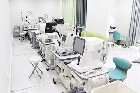 眼圧、視力検査、眼底カメラ等の通常の検査機器に加えて、最新の機器を取り揃えており、目の状態をより詳しく検査することができます。